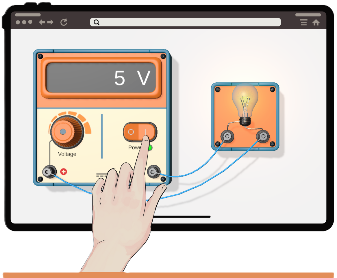 We are developing a 3D simulator of an electrical engineering laboratory. The application will be available online in the browser from any device (Computers, laptops, mobile phones).